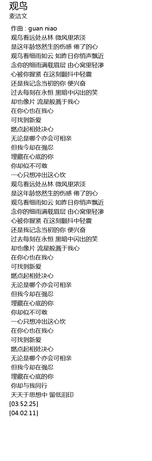 | [01:55.40] | 观鸟看远处丛林 微风里浓淡 |