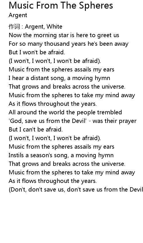 | Song | Music From The Spheres |