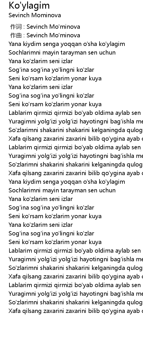 | [00:00.000] | 作词 : Sevinch Mo'minova |