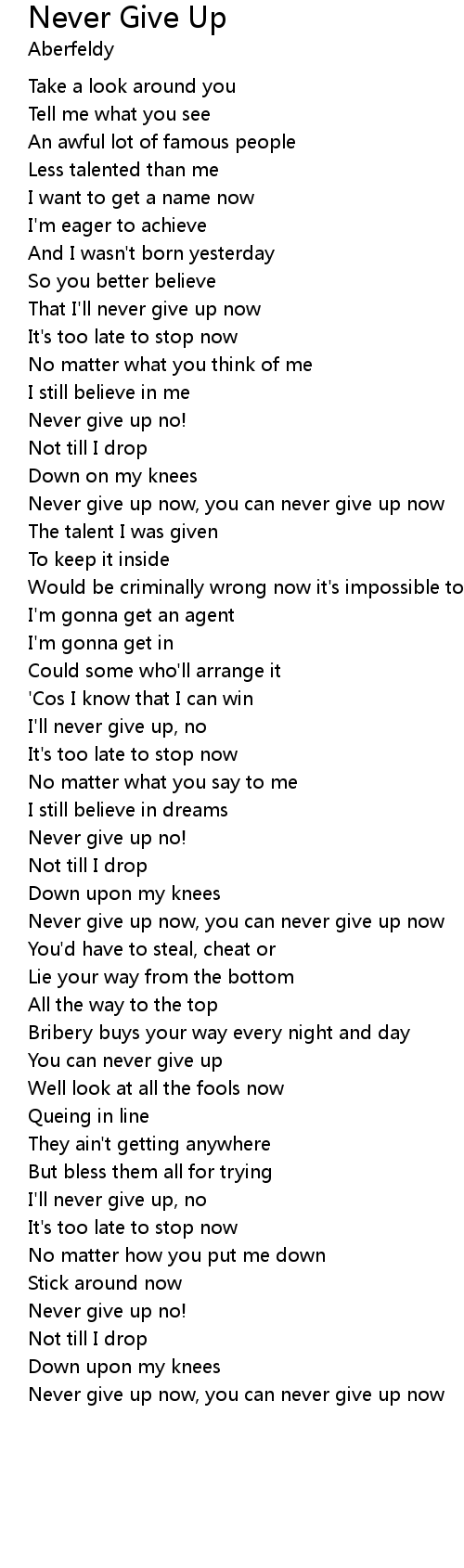Never give up now, you can never give up now |