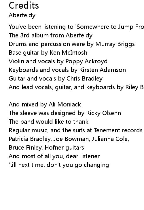 You've been listening to 'Somewhere to Jump From' |