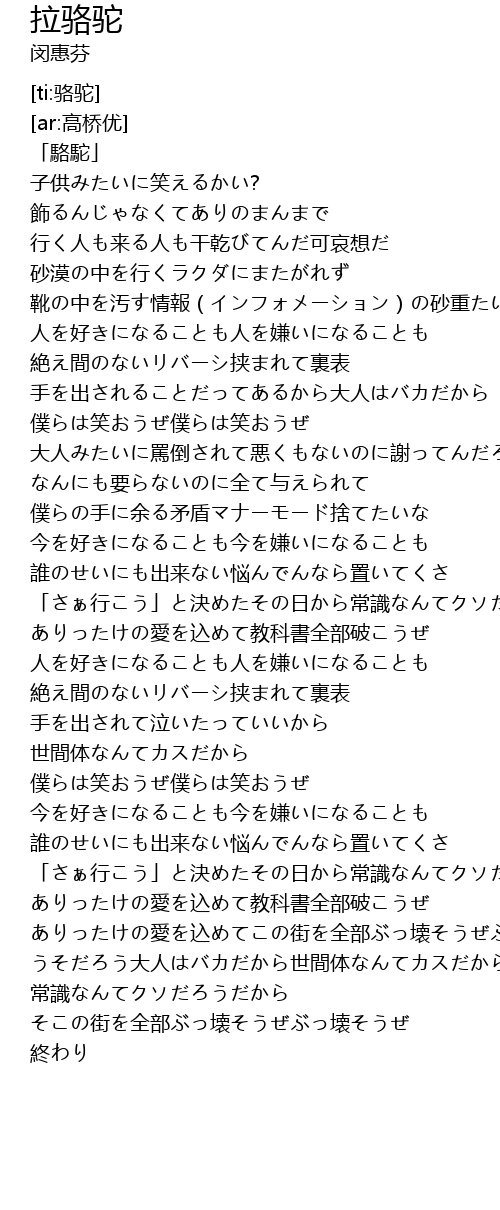 | [00:01.243] | 「駱駝」 |