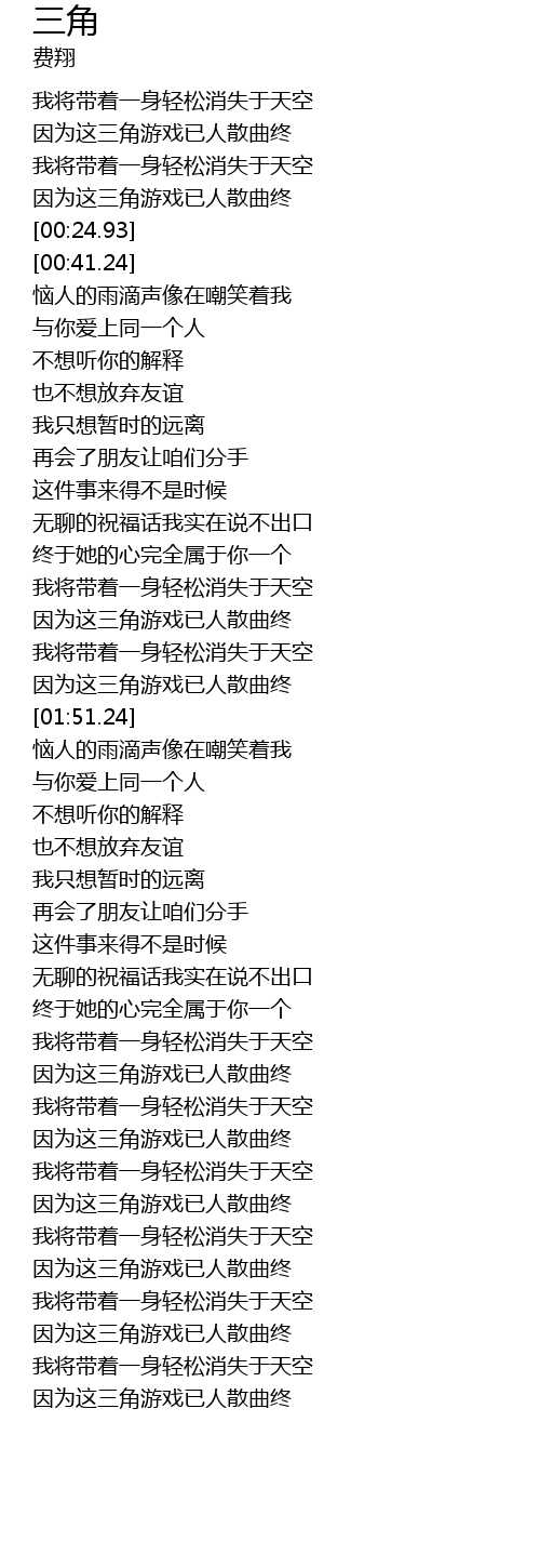 | [03:23.44] | 因为这三角游戏已人散曲终 |