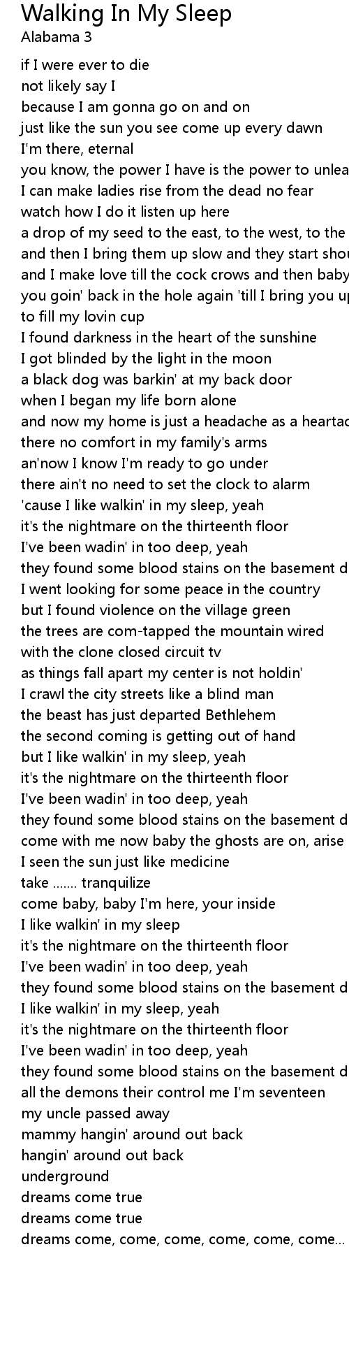 Walking In My Sleep Lyrics