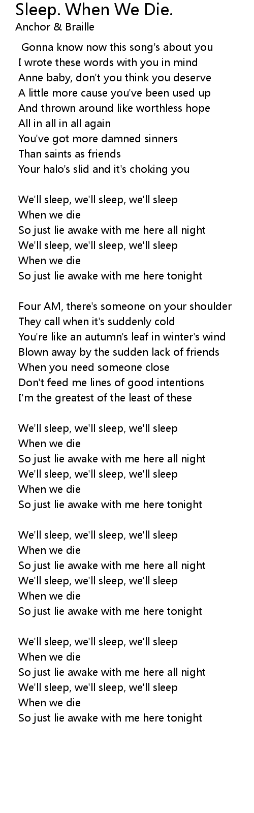 We'll sleep, we'll sleep, we'll sleep |