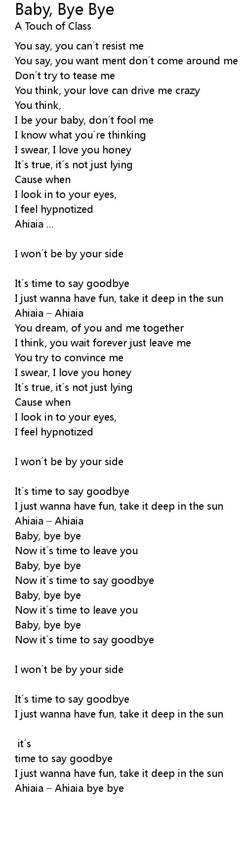 | Ahiaia Ahiaia you can call me baby, baby bye bye bye bye | |