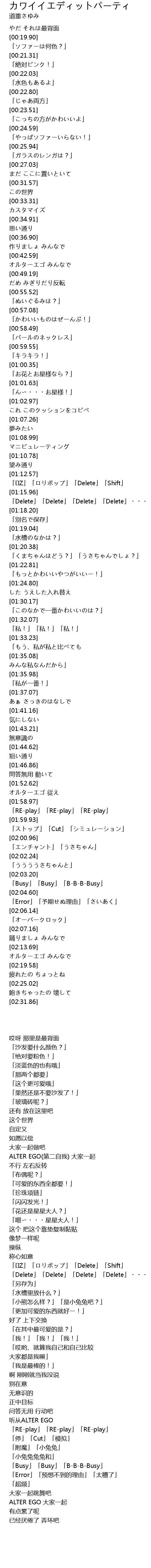 | [02:13.88] | オルターエゴ みんなで |