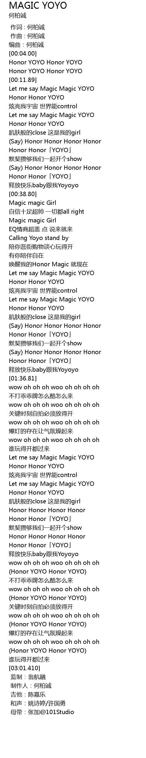 | [02:41.44] | (Honor YOYO Honor YOYO) |