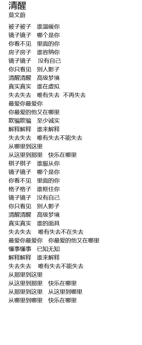 | [00:38.44] | 清醒清醒 高级梦境 |