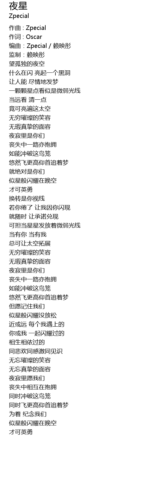 | [00:02.18] | 编曲:Zpecial / 赖映彤 |