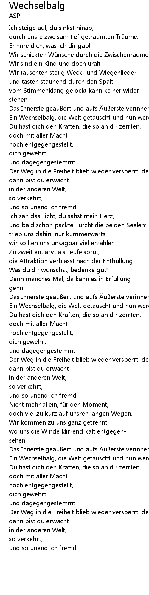 | Song | Wechselbalg |