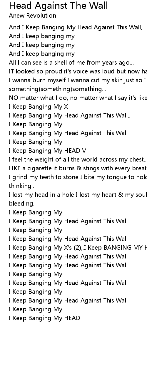 And I Keep Banging My Head Against This Wall, |