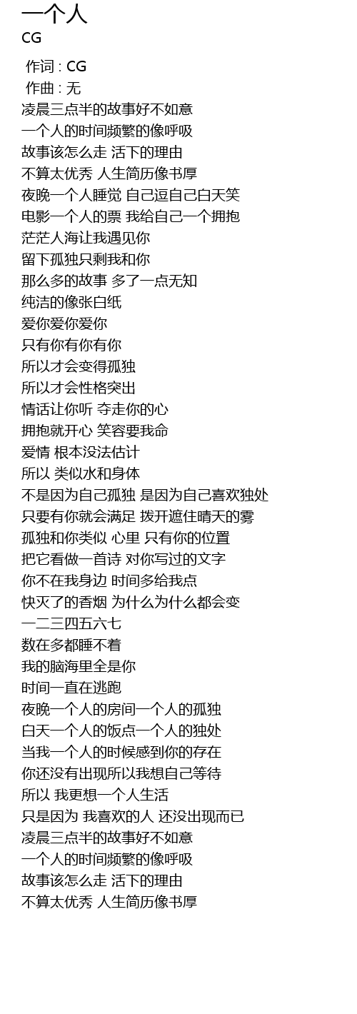 | [00:00.000] | 作词 : CG |