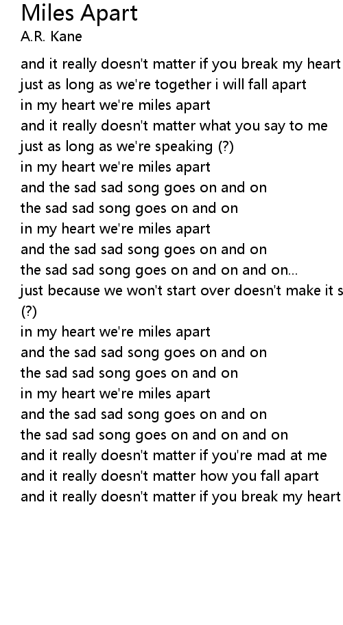 in my heart we're miles apart
