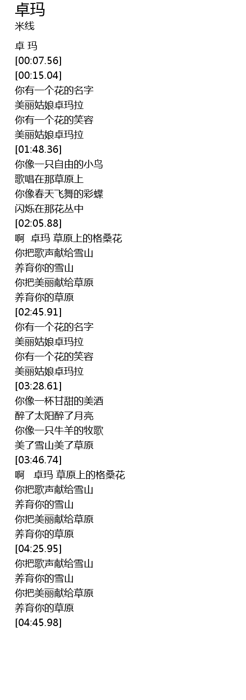 [03:16.37] 美丽姑娘卓玛拉
