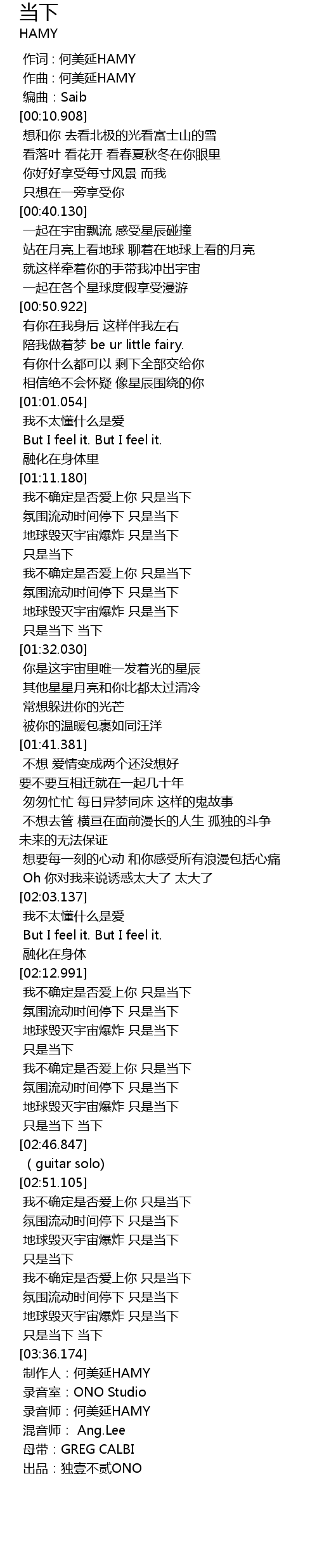 | [03:37.257] | 制作人:何美延HAMY |