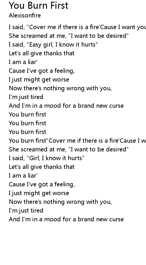 You burn first"Cover me if there is a fire'Cause I want you to burn first" |