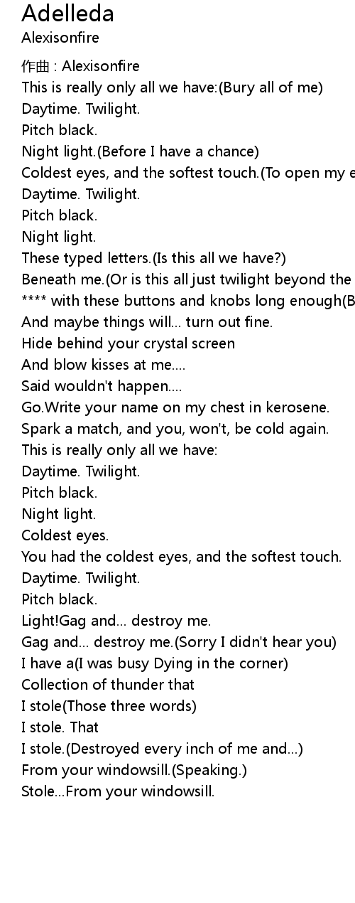 | Coldest eyes, and the softest touch.(To open my eyes and see you laughing.) | |
