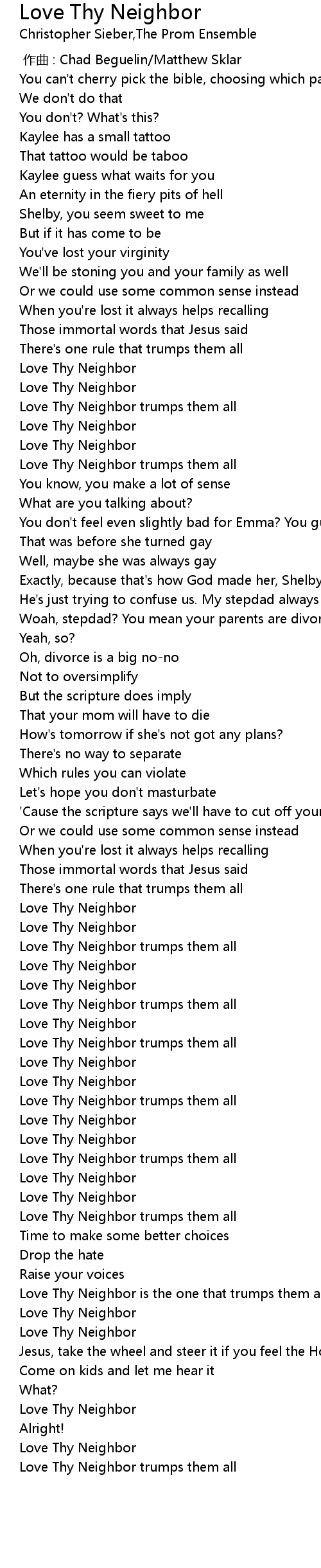 | [03:33.48] | Love Thy Neighbor trumps them all |