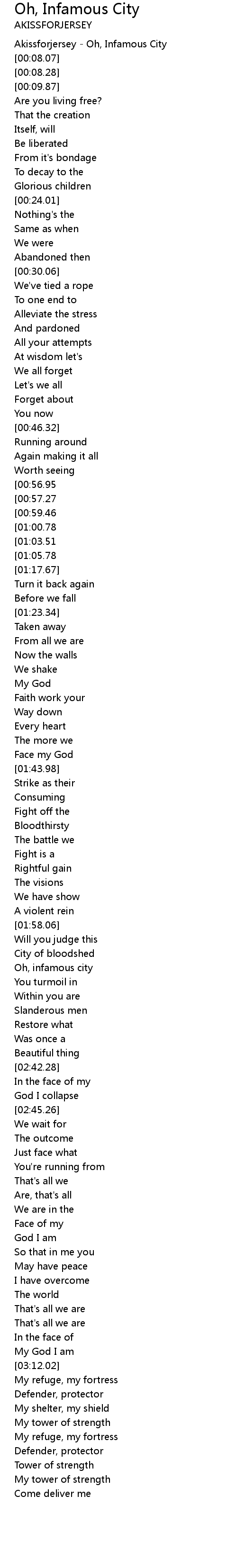 | [00:01.51] | Akissforjersey - Oh, Infamous City |