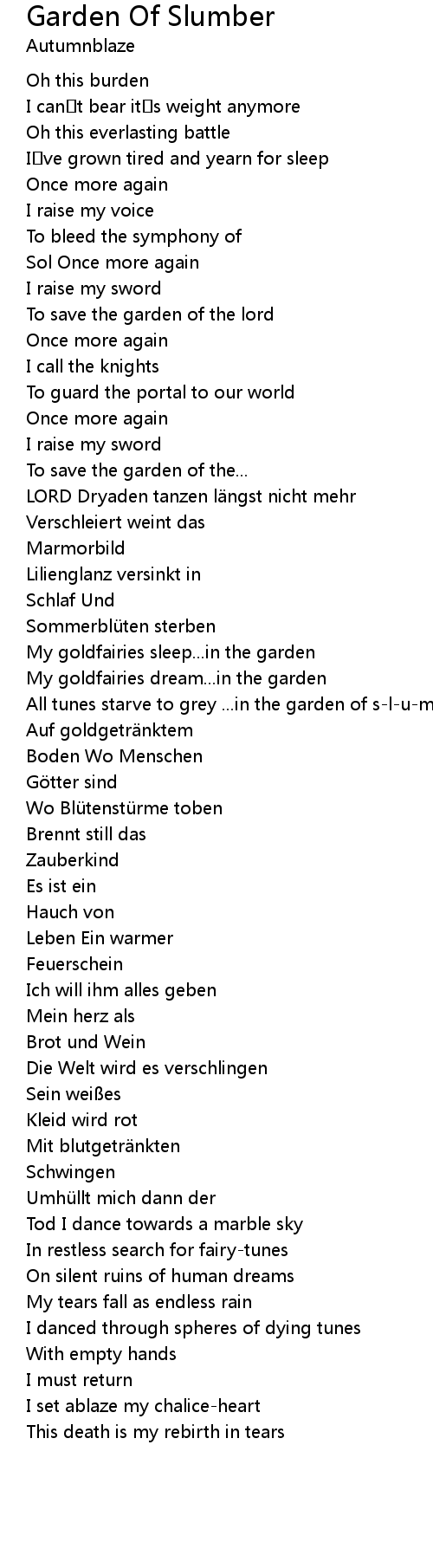 | All tunes starve to grey ...in the garden of s-l-u-m-b-e-r | |