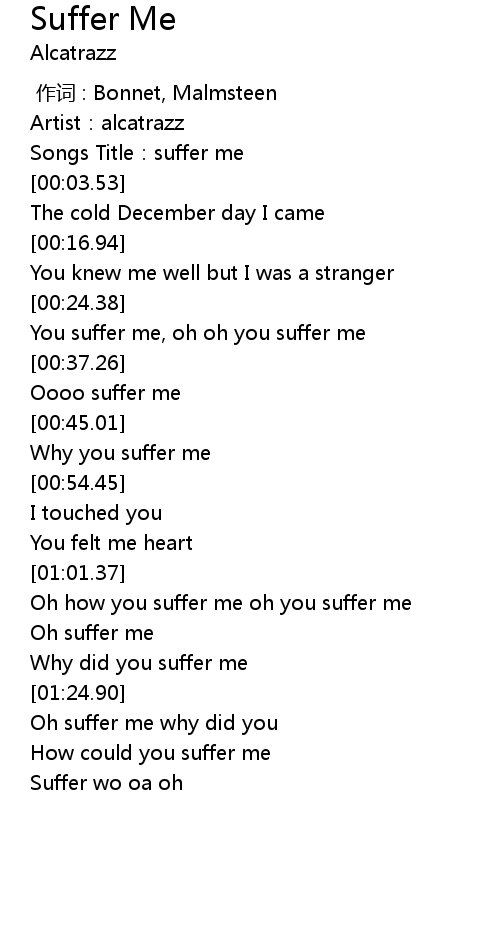 | [00:28.20] | You suffer me, oh oh you suffer me |