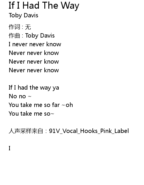 | Song | If I Had The Way |