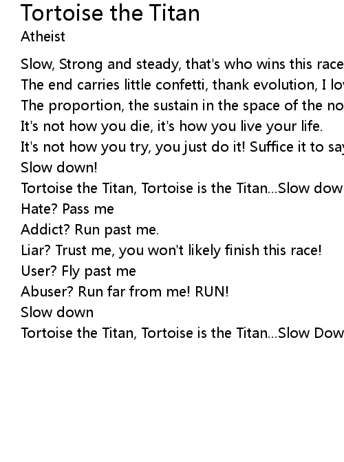 | Tortoise the Titan, Tortoise is the Titan...Slow down!!! | |