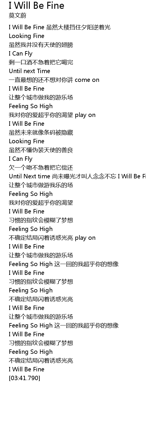 | [00:25.729] | I Will Be Fine sui ran da lou dang zhu xi yang ni zhe guang |