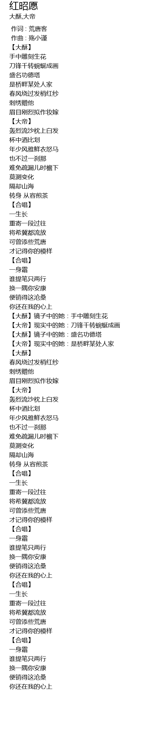 | [00:00.000] | 作词 : 荒唐客 |