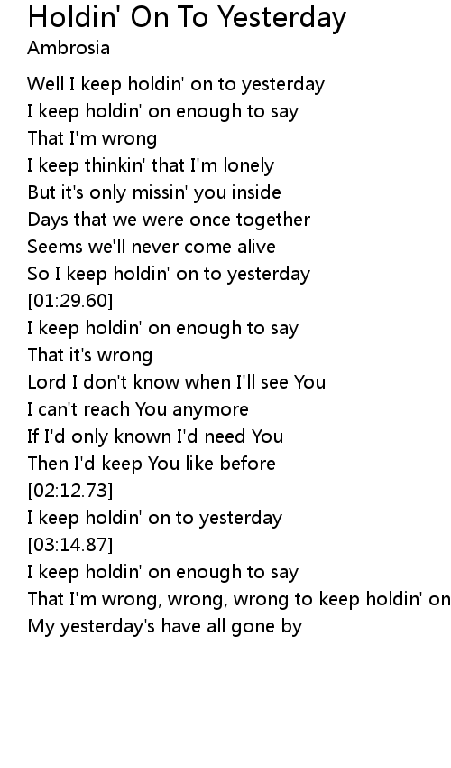 | [01:17.79] | So I keep holdin' on to yesterday |