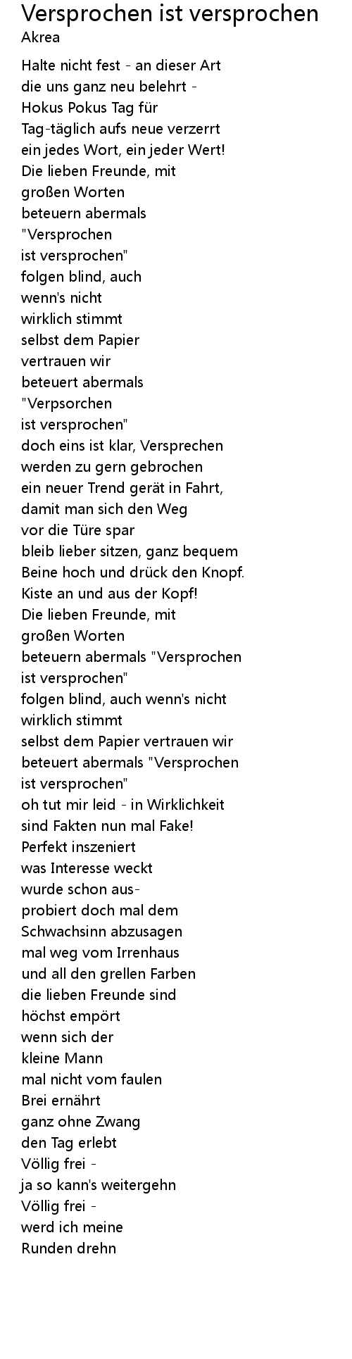 | doch eins ist klar, Versprechen | |