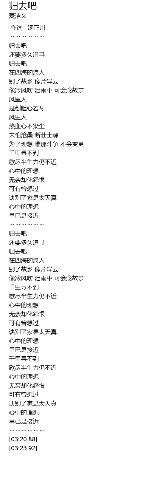 | [00:19.03] | bié le gù xiāng xiàng piàn fú yún |