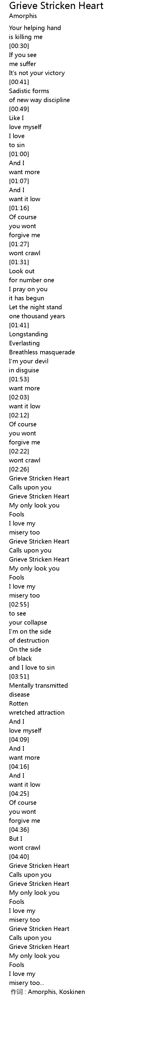 | [00:00.00] | 作词 : Amorphis, Koskinen |