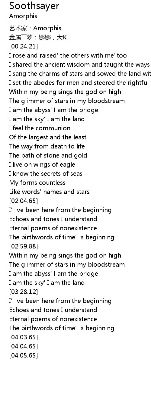 | [00:12.21] | 艺术家:Amorphis |