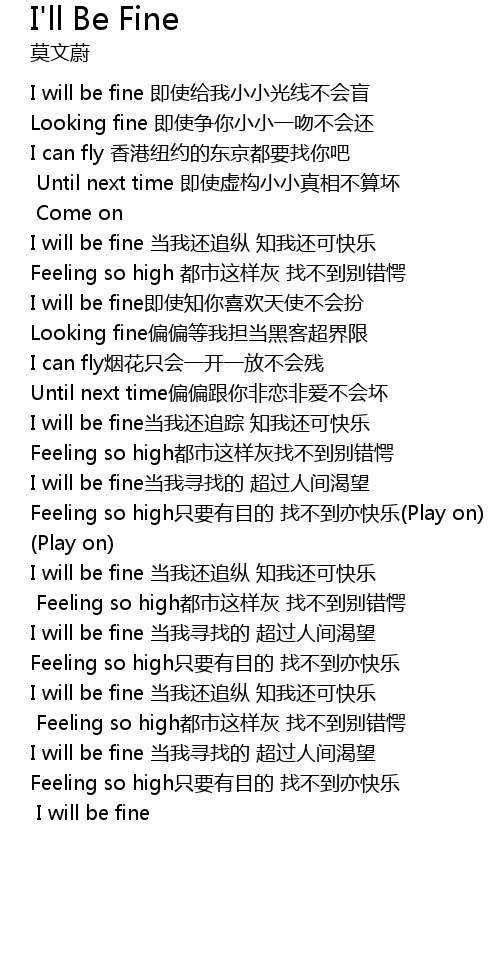 | [00:55.37] | I will be fine dang wo hai zhui zong zhi wo hai ke kuai le |
