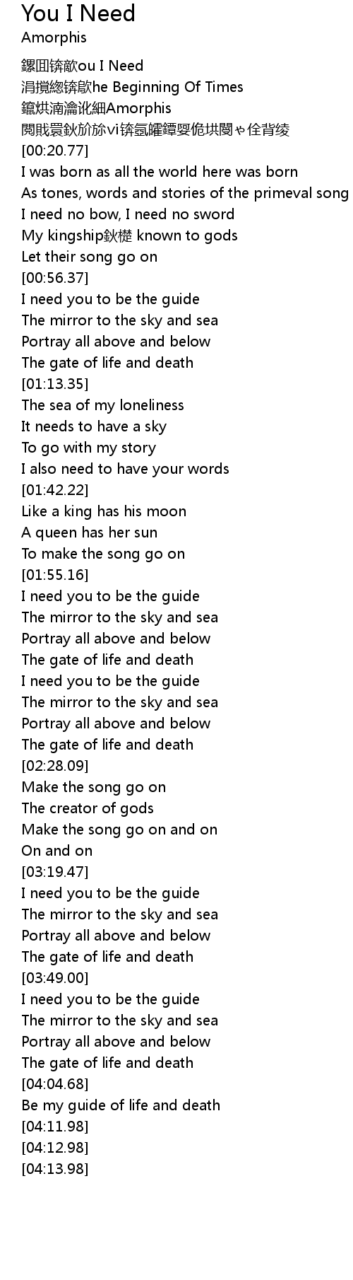 | [00:00.00] | 鏍囬锛歒ou I Need |