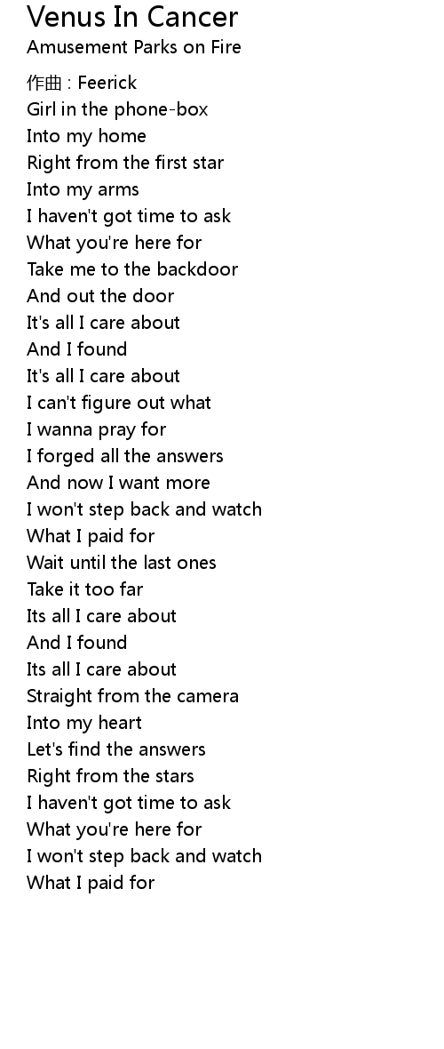 | Song | Venus In Cancer |