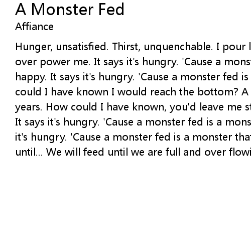 over power me. It says it's hungry. 'Cause a monster fed is a monster that's |