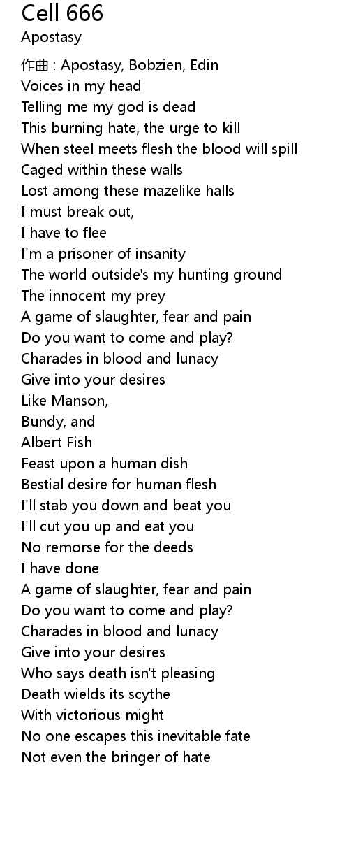 | 作曲 : Apostasy, Bobzien, Edin | |