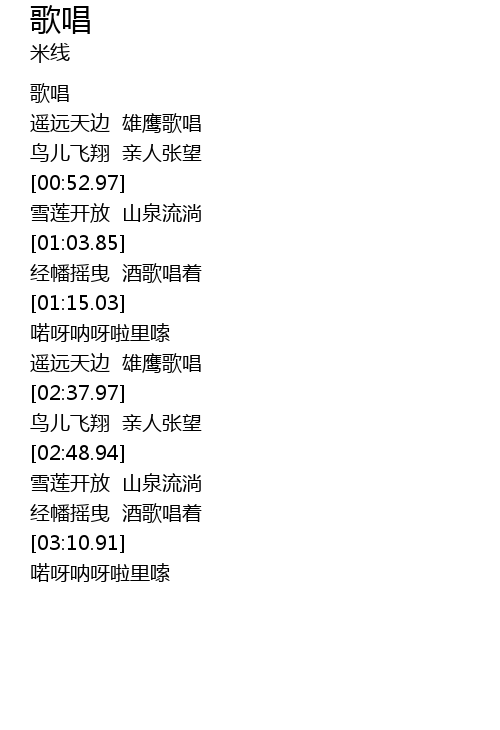 | [00:31.64] | 遥远天边 雄鹰歌唱 |