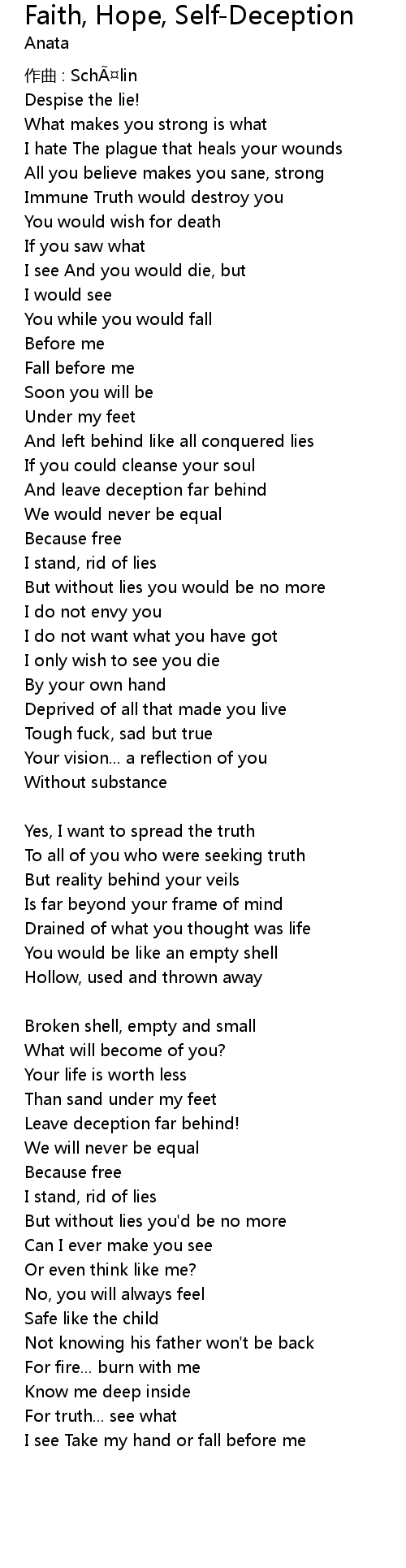 | Song | Faith, Hope, Self-Deception |