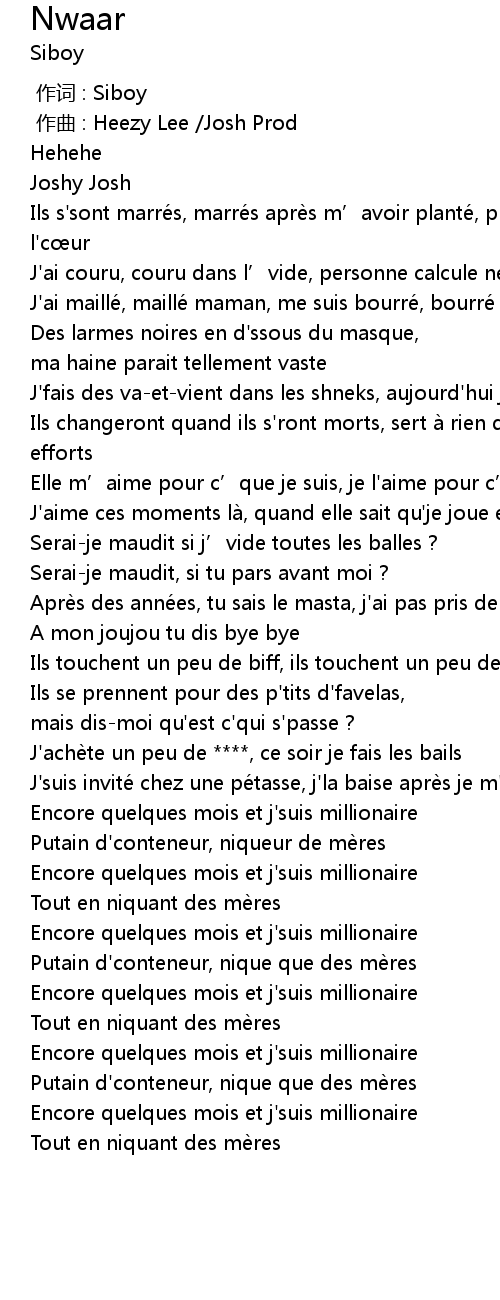| [01:53.64] | Putain d' conteneur, nique que des me res |