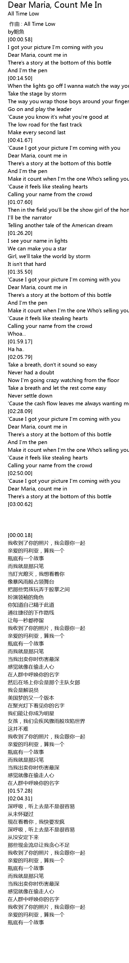 | [01:38.86] | Dear Maria, count me in |