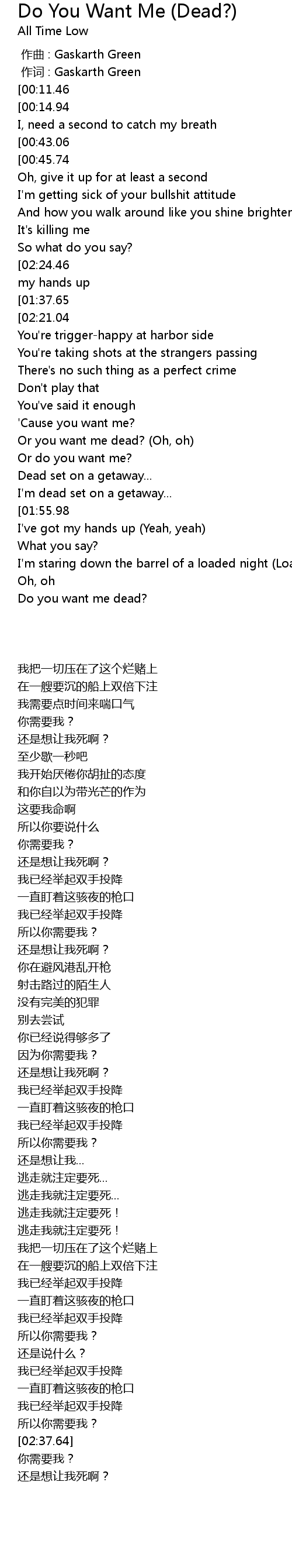 | [01:03.72][00:45.74][00:23.90] | Or do you want me dead? |