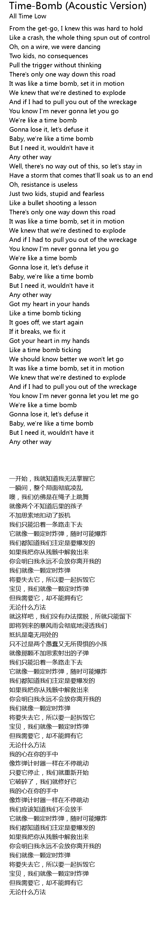 Baby, we're like a time bomb |