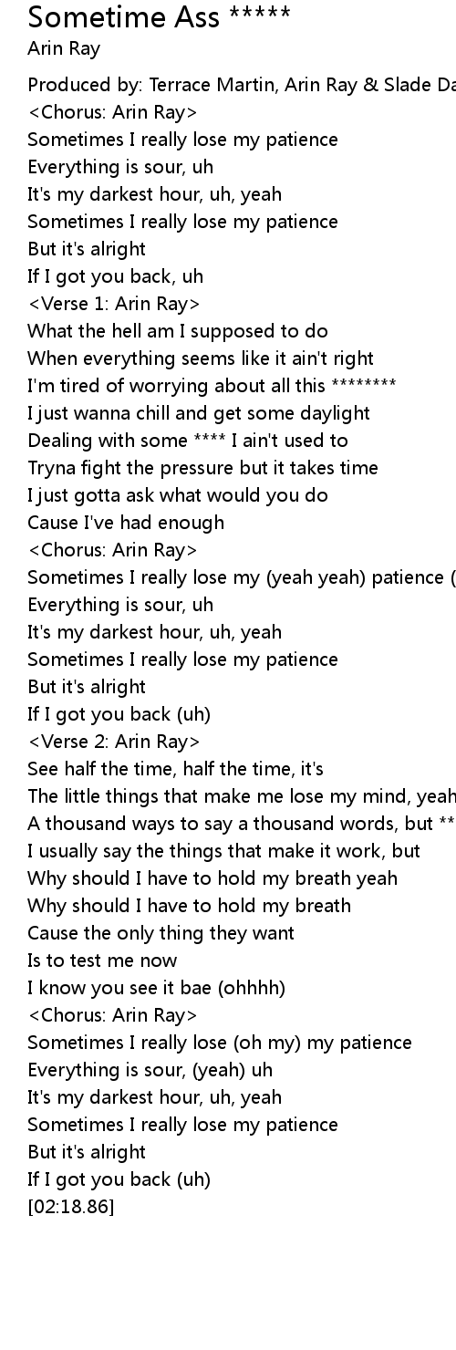 Sometimes I really lose my (yeah yeah) patience (my oh my) |