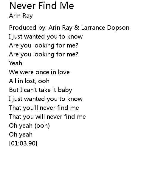 | Song | Never Find Me |