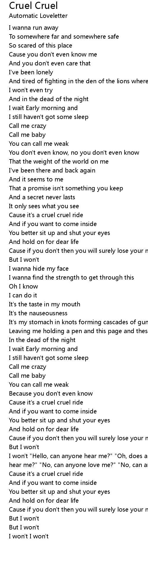 Cause it's a cruel cruel ride |