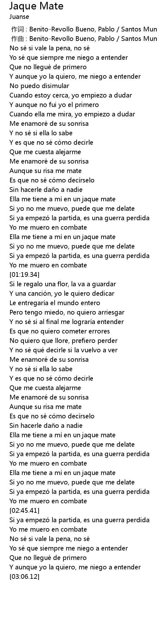 | [02:31.52] | Ella me tiene a mi en un jaque mate |